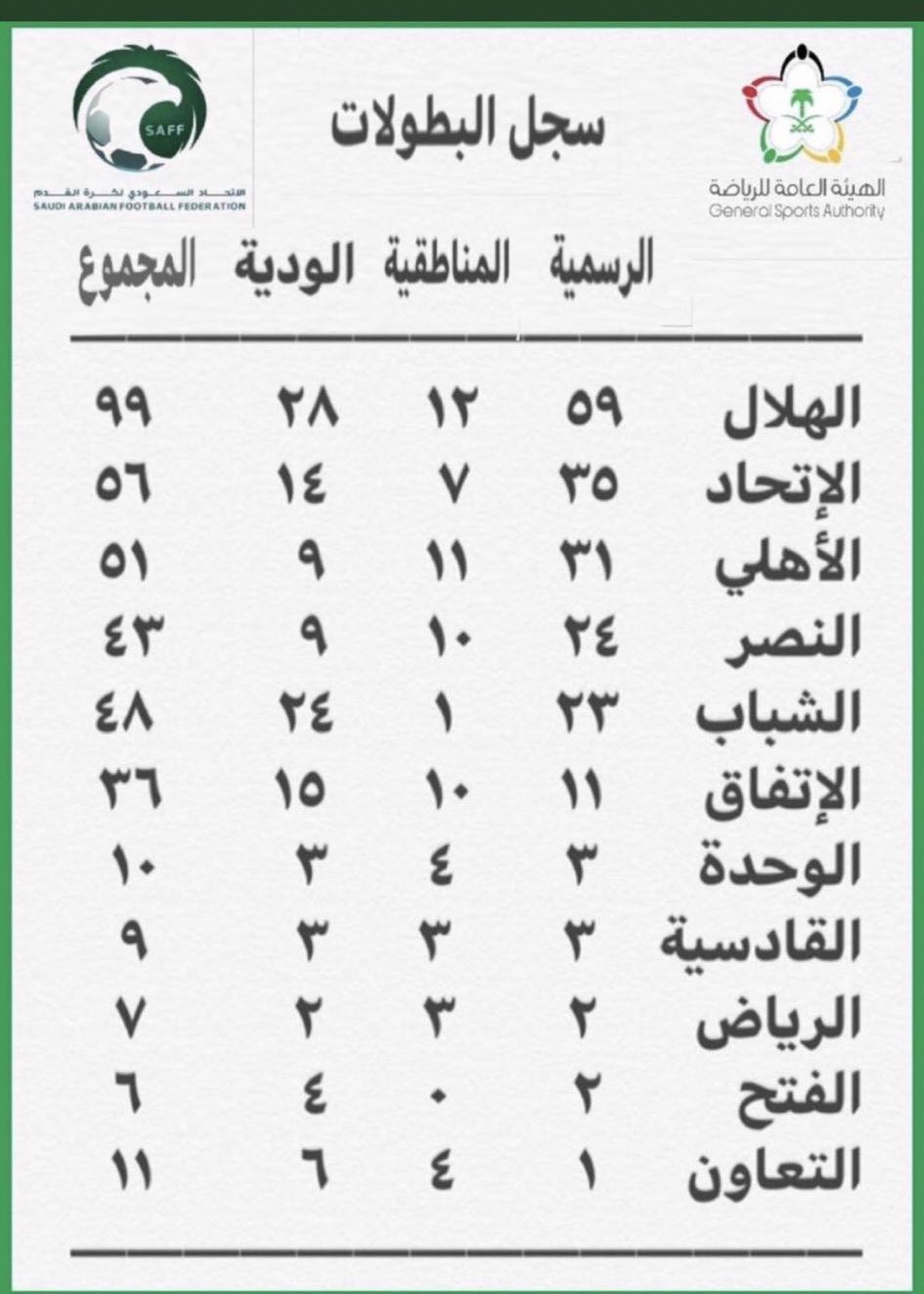 صالح الهويريني On Twitter من واجب الهلاليين ان يعتبروا عدد بطولات فريقهم 99 بطولة ونسيان انها 59 حتى يصدر قرار رسمي من اتحاد الكرة يوضح عدد بطولات كل فريق Https T Co Ffagdaamoe